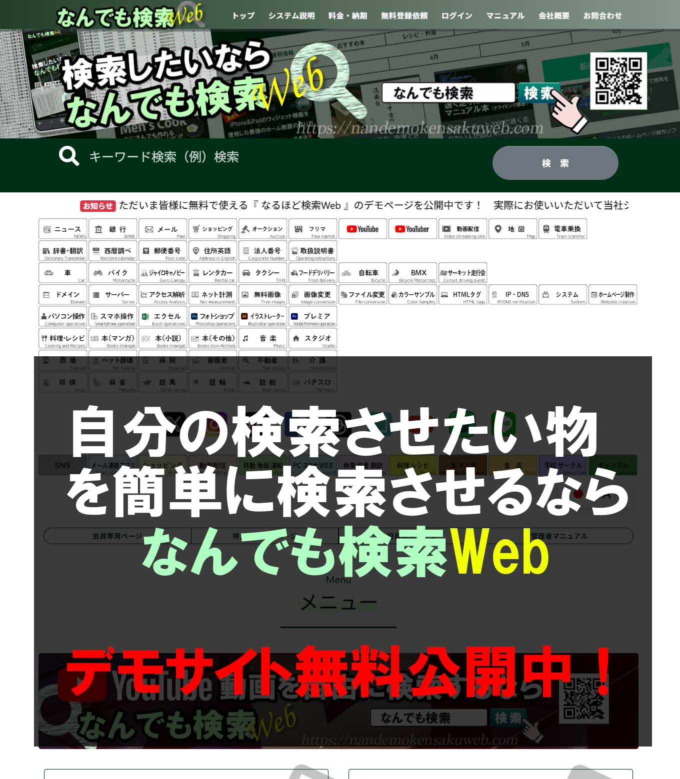 なるほど検索Webのシステムの説明ページとなります。
